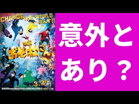 この映画、おそ松さんファンからの評価は低評価がかなり多く、ジャニーズ映画としても評判はそこまで高くはないと思うんですよね。